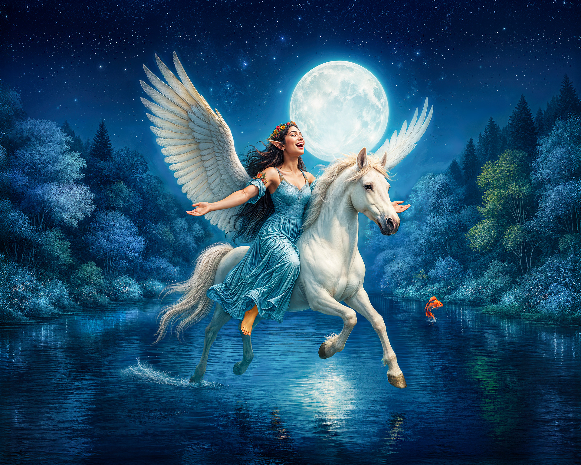 Lunaria had no destination, only a need to feel the wind in her face and the rhythm of her heart beneath the moon. With each wingbeat of her spirit of the wind, Mira, the world fell away behind her. For a moment, the night belonged to joy.